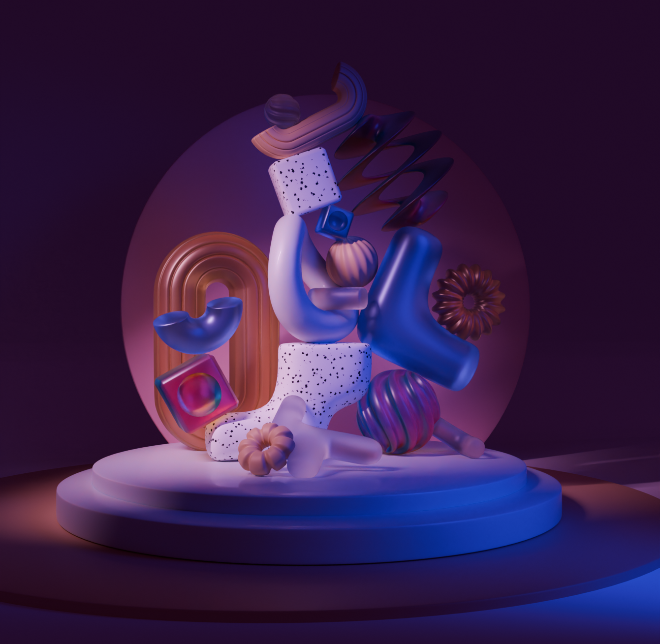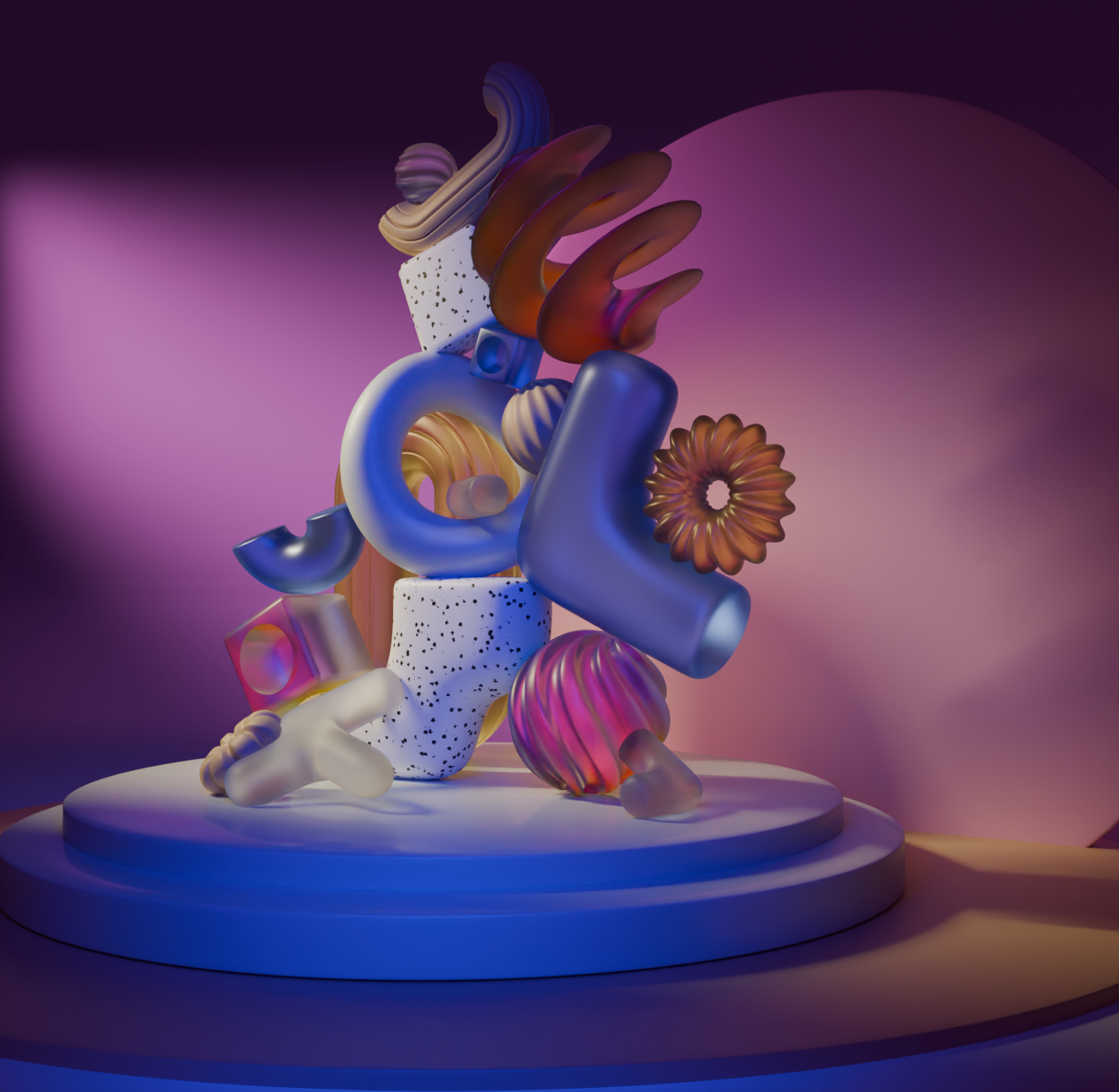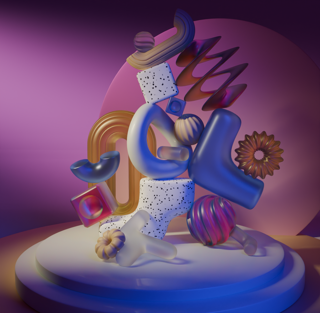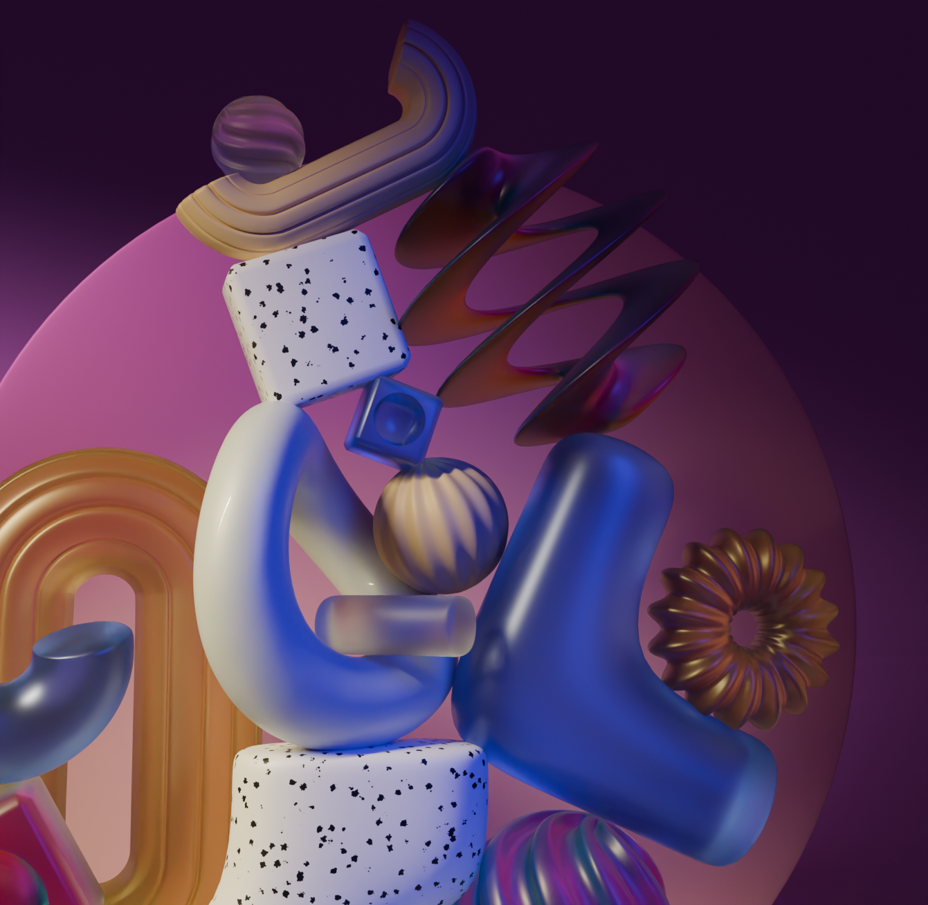 I created abstract compositions, incorporating various abstract shapes to showcase different techniques I learned in Blender. I arranged the lighting and camera positioning, used various materials and animation.