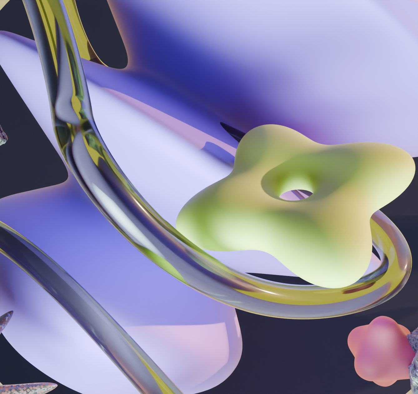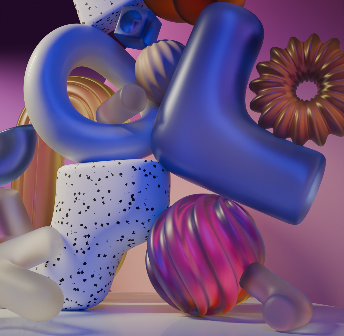 Sukūriau abstrakčias kompozicijas, kuriose panaudojau įvairias abstrakčias formas, parodančias skirtingas technikas, išmoktas dirbant su Blender.