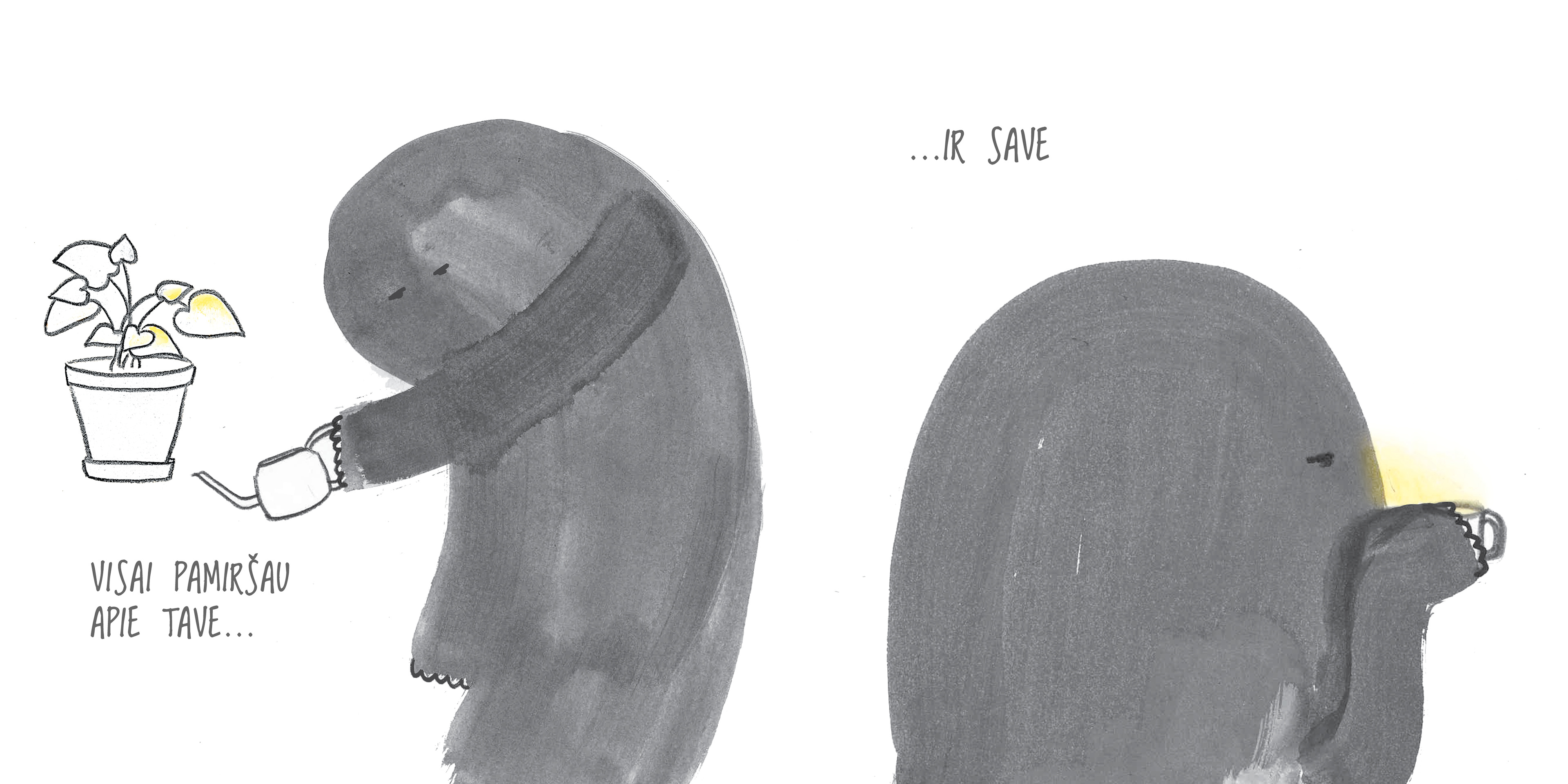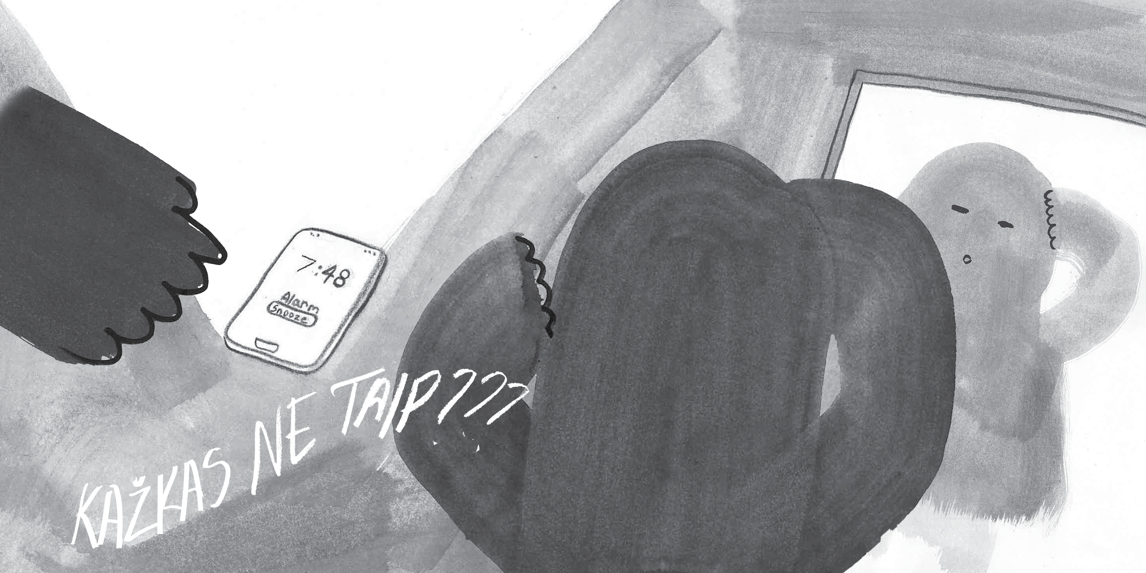 The illustrated book “Kažkas ne taip?” (“Something is Wrong?”) tells a personal story about a specific psychological state. While being part of the Vilnius Academy of Arts community—composed of creative individuals—and observing frequent instances of creative burnout, I noticed the prevalence of this issue and the insufficient attention paid to its resolution and prevention. This work explores the burnout experienced by young individuals, which negatively impacts their overall emotional health. The illustrations are hand-drawn, and the book comes alive with augmented reality. Animations were created using After Effects and Photoshop. Augmented reality is made with Unity.